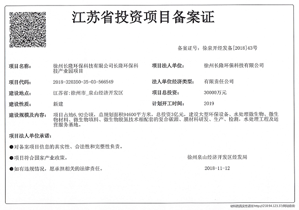 項目名稱:徐州長隆環??萍加邢薰鹃L隆環??萍籍a業園項目