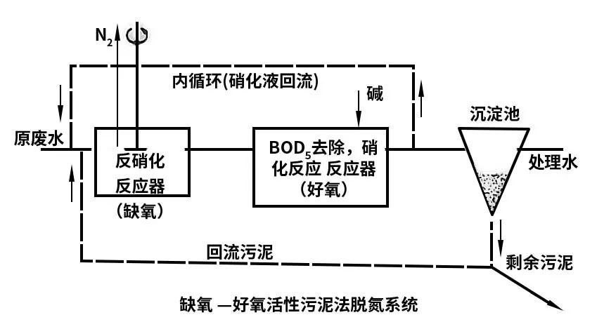 生物脫氮工藝是目前實現污水脫氮最主要的技術手段。其原理是利用不同微生物的氨化、硝化和反硝化作用完成。
